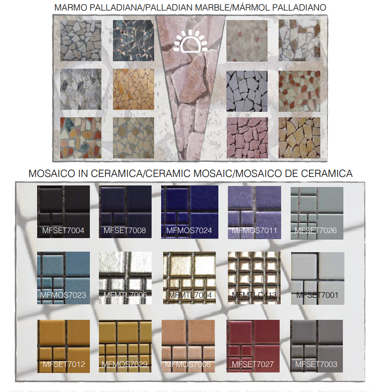 Išorinė apdaila gali būti Palladiana marmuro, mozaikos arba dažyta, taip pat su restorano logotipu (papildoma kaina)