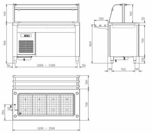Išmatavimai (plotis x gylis x aukštis) 1200 x 700 x 900 mm